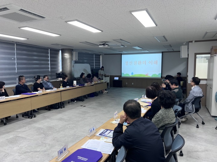 2023년 10월 통장 대상 정신건강교육 페이지 정보 작성자 남구정신건강복지센터 댓글 0건 조회 1,957회 작성일 23-11-06 16:28 목록 본문 2023년 10월 24일 통장을 대상으로 정신건강교육(정신질환의 이해)을 진행하였습니다. 이전글2023년 10월 남구청년발전소 마음건강캠페인 23.11.06 다음글2023년 10월 동명대학교 중독 예방 캠페인 23.11.06