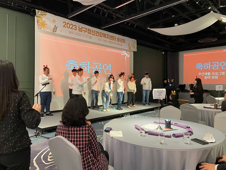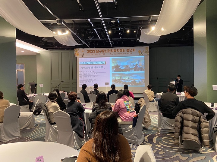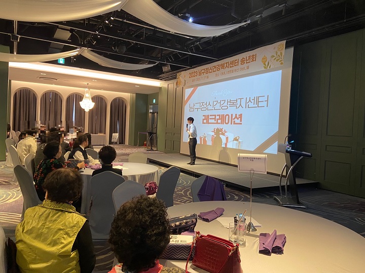 2023년 11월 송년회 페이지 정보 작성자 남구정신건강복지센터 댓글 0건 조회 2,077회 작성일 23-12-05 11:22 목록 본문 2023년 11월 27일 아바니 센트럴 연회장에서 남구정신건강복지센터 송년회를 진행하였습니다. 이전글2023년 11월 청장년 여성 자살예방사업 [맘,쉼] 23.12.05 다음글2023년 부산환경공단 정신건강서비스 23.12.05