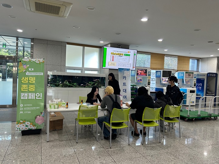 2024년 10월 자살예방캠페인(부경대학교 행복기숙사, 동명대학교) 페이지 정보 작성자 남구정신건강복지센터 댓글 0건 조회 1,175회 작성일 24-11-01 10:24 목록 본문 10월11 부경대 행복기숙사 Safe Call-easy 캠페인10월25일 동명대학교 Safe Call-easy 캠페인 이전글부경대 행복기숙사 MOU 24.11.01 다음글경성대학교 외국인 유학생 마음건강 캠페인 24.11.01