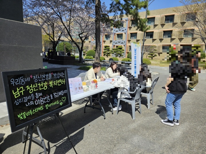 2024년 4월 부경대학교 마음건강 캠페인 페이지 정보 작성자 남구정신건강복지센터 댓글 0건 조회 1,800회 작성일 24-05-03 17:19 목록 본문 2024년 04월 01일 부경대학교에서 학생들을 대상으로 마음건강 캠페인을 진행하였습니다. 이전글2024년 4월 부산예술대학교 대학생 정신건강사업 간담회 24.05.03 다음글2024년 4월 초등학교 대상 생명존중교육 24.05.03