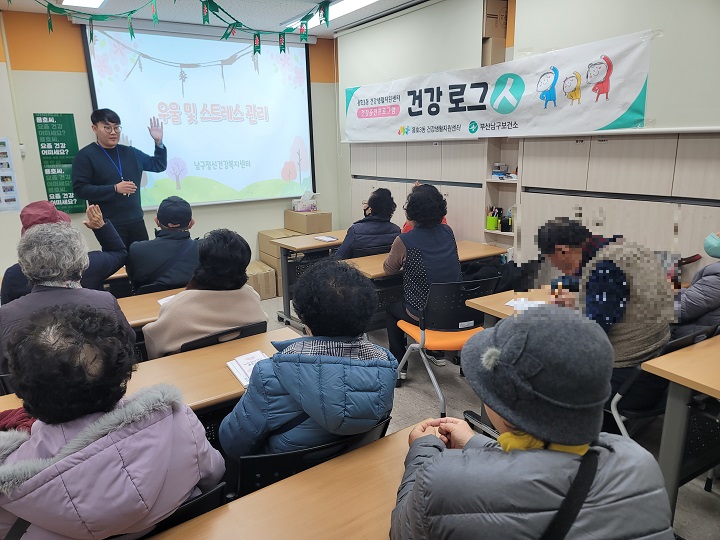 2023년 12월 용호3동 건강생활지원센터 교육 페이지 정보 작성자 남구정신건강복지센터 댓글 0건 조회 1,960회 작성일 24-01-05 17:07 목록 본문 2023년 12월 27일 용호3동 건강생활지원센터에서 노인우울관리 교육을 실시하였습니다. 이전글2023년 12월 제4차 운영위원회 24.01.05 다음글2023년 12월 부경대학교 캠페인 24.01.05