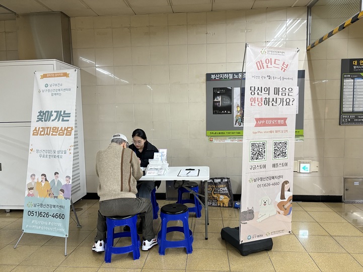 2024년 2월 대연역, 이마트 문현점, 남구 도서관에서 찾아가는 심리지원서비스 캠페인을 진행하였습니다.