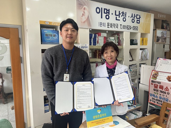 2024년 3월 생명존중 약국 업무 협약 페이지 정보 작성자 남구정신건강복지센터 댓글 0건 조회 1,763회 작성일 24-04-05 09:17 목록 본문 2024년 3월 26일 생명존중 약국 사업의 일환으로 문화약국과 MOU를 체결하였습니다. 이전글2024년 3월 노인자살예방사업 경이로운지킴이 24.04.05 다음글2024년 3월 문현여고 생명존중캠페인 24.04.05
