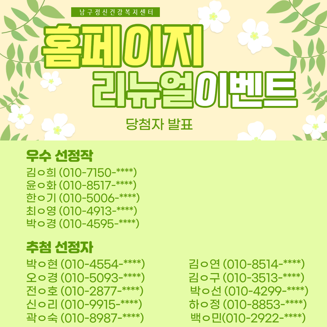 [홈페이지 리뉴얼 이벤트] 마음건강놀이터 당첨자 발표