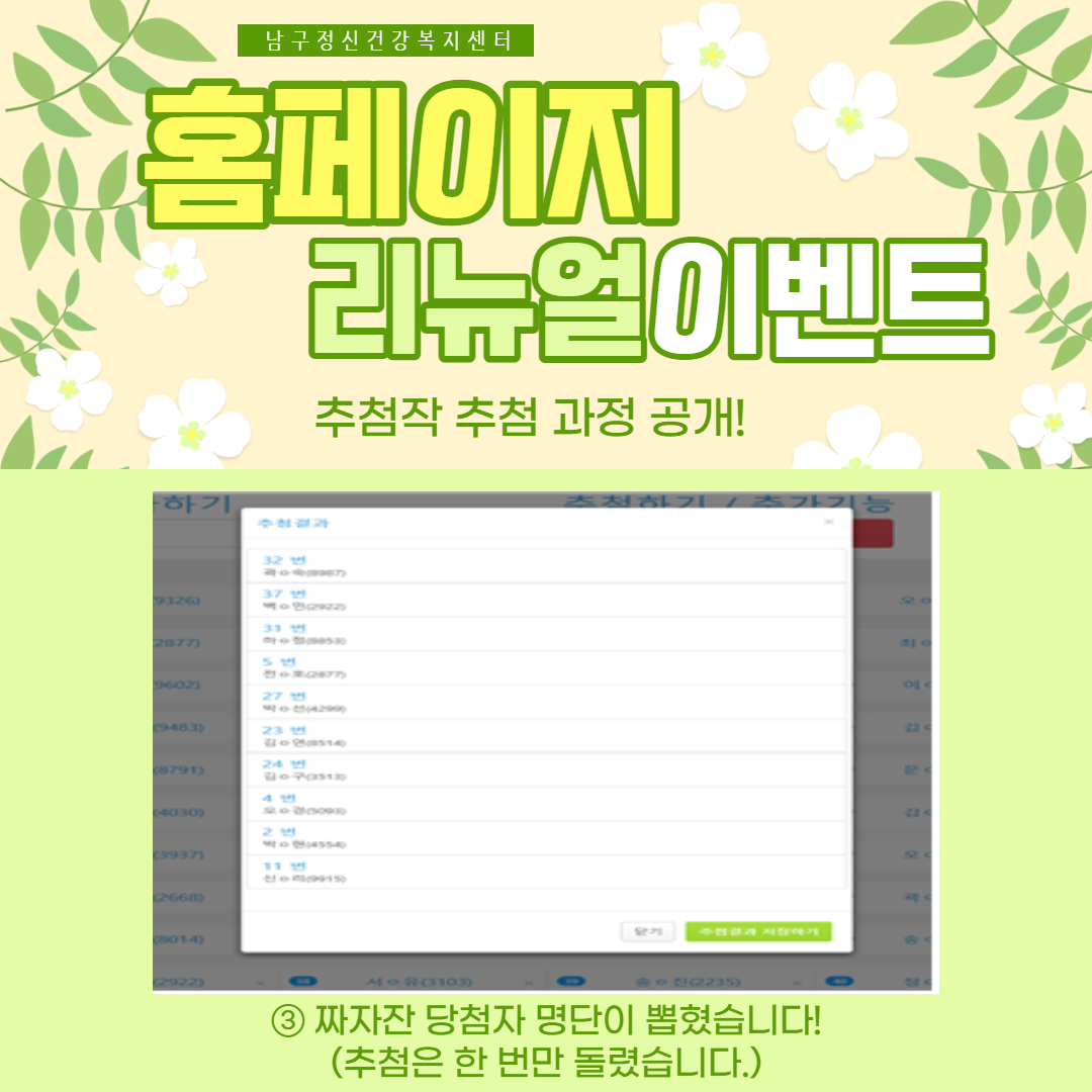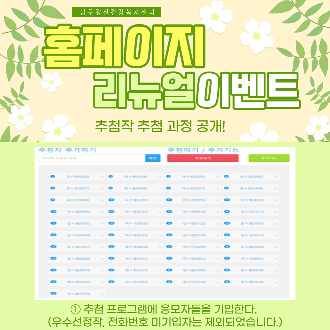 ③ 당첨자 응모내용 사용의 모든 권리는 부산남구정신건강복지센터에 있습니다.