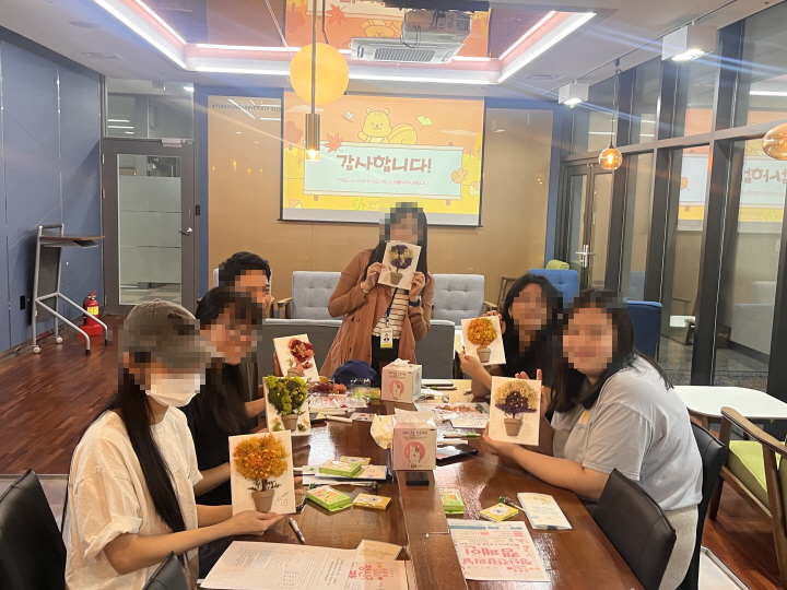 2024년 9월 외국인 유학생 마인드 케어 교육 페이지 정보 작성자 남구정신건강복지센터 댓글 0건 조회 1,260회 작성일 24-10-04 09:10 목록 본문 2024년 9월 25일 외국인 유학생 마인드 케어 교육을 진행하였습니다. 이전글2024년 9월 자살예방캠페인(부경대학교 행복기숙사, 동명대학교) 24.10.04 다음글2024년 8월 청(소)년 정신건강 조기중재사업 소.중 MOU 24.09.04