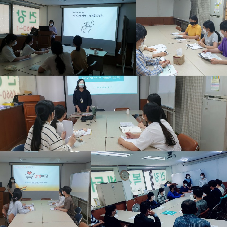 2020년 6월 영산대학교 간호학과 학생 실습 페이지 정보 작성자 남구정신건강복지센터 댓글 0건 조회 6,996회 작성일 20-07-07 10:29 목록 본문 2020년 6월에 영산대학교 간호학과 학생 실습생들이 센터에서 실습을 진행하였습니다. 이전글2020년 6월 부경대학교 간호학과 학생 실습 20.07.07 다음글2020년 6월 26일 대한노인회 부산광역시연합회 남구지회 연계 생명사랑 캠페인 20.07.07