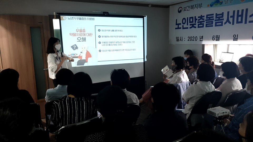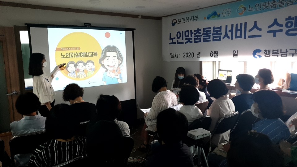 2020년 6월 12일 행복남구노인복지센터 노인맞춤돌봄서비스 수행인력 대상 생명지킴이 양성 교육(이어줌인) 및 노년기 우울증 …